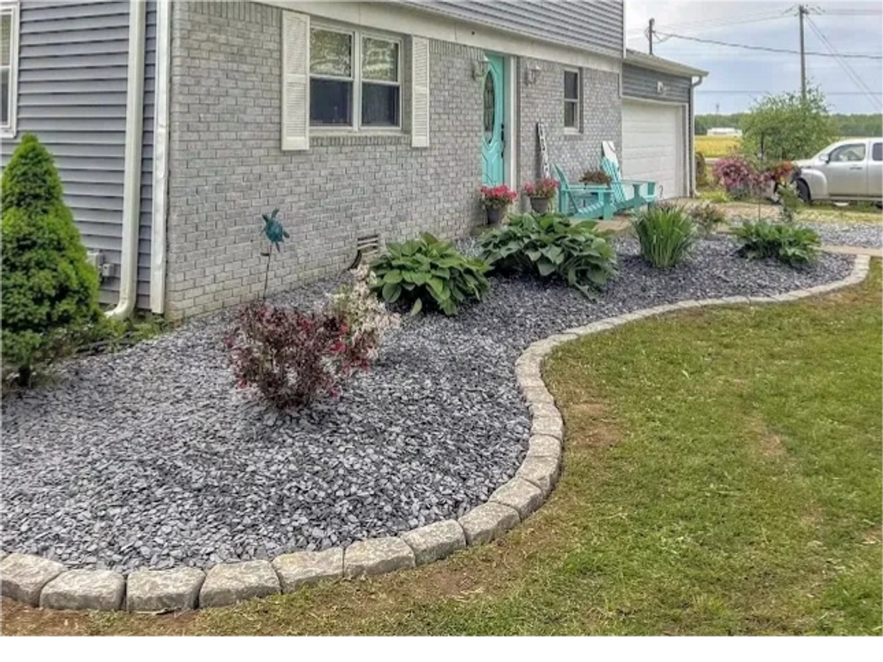 Un-like mulching (which must be done every year) rock landscaping once done only requires minimal maintenance and will last for decades. All rock jobs include delivery, prepping existing flowerbed, commercial grade weed mats, and stone border installation.